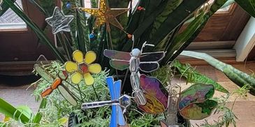 At Jules Glass Creations, each and every piece of garden art that I create is unique and original. These garden stakes look great in groups rising about plants and flowers, adding a pop of color just where you need it.